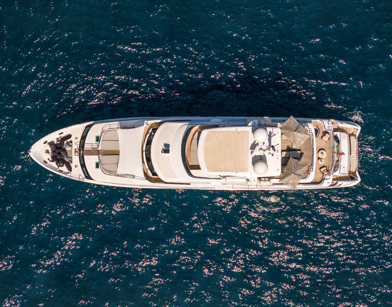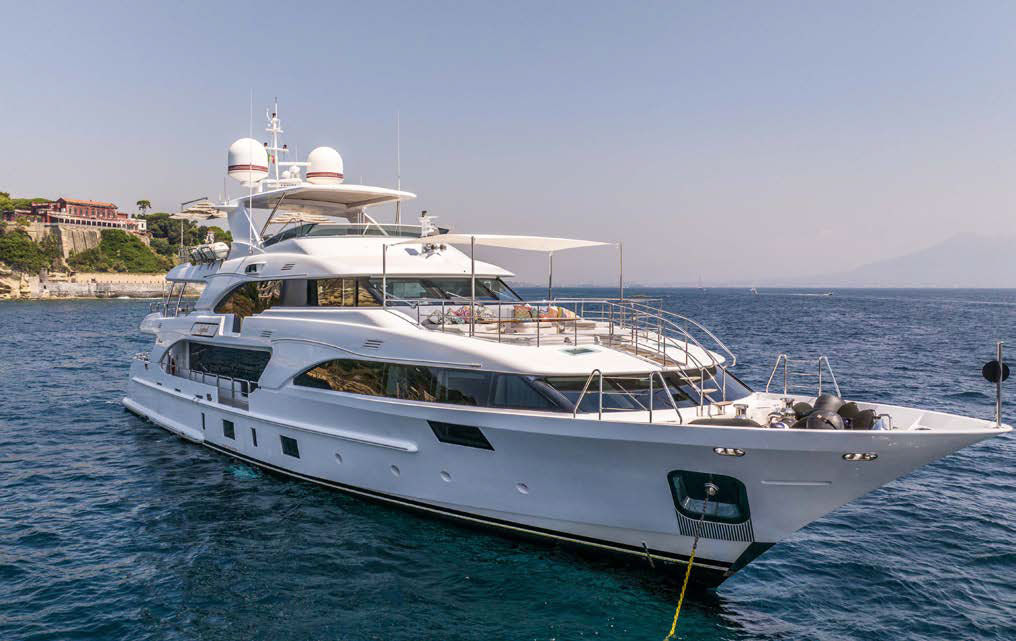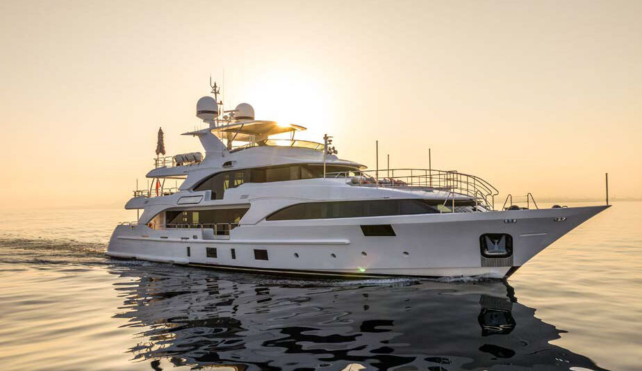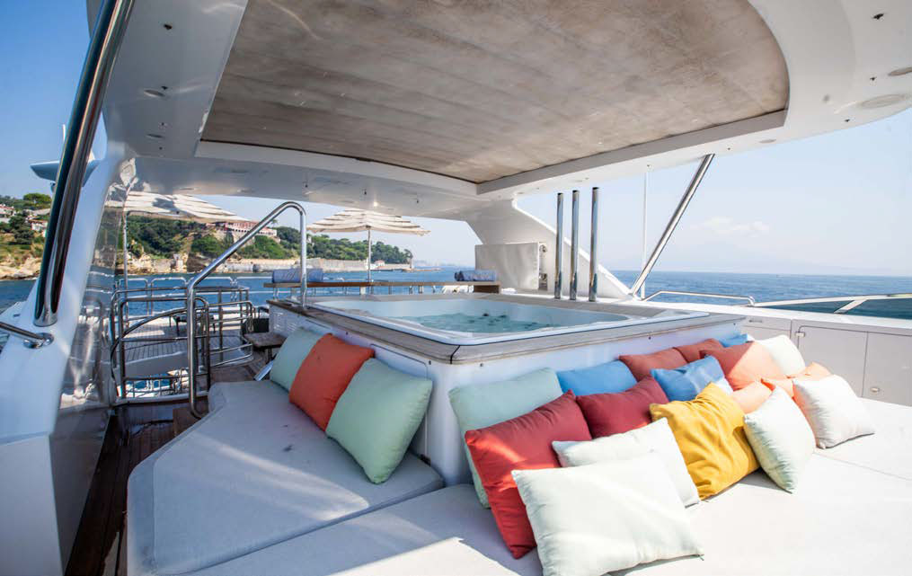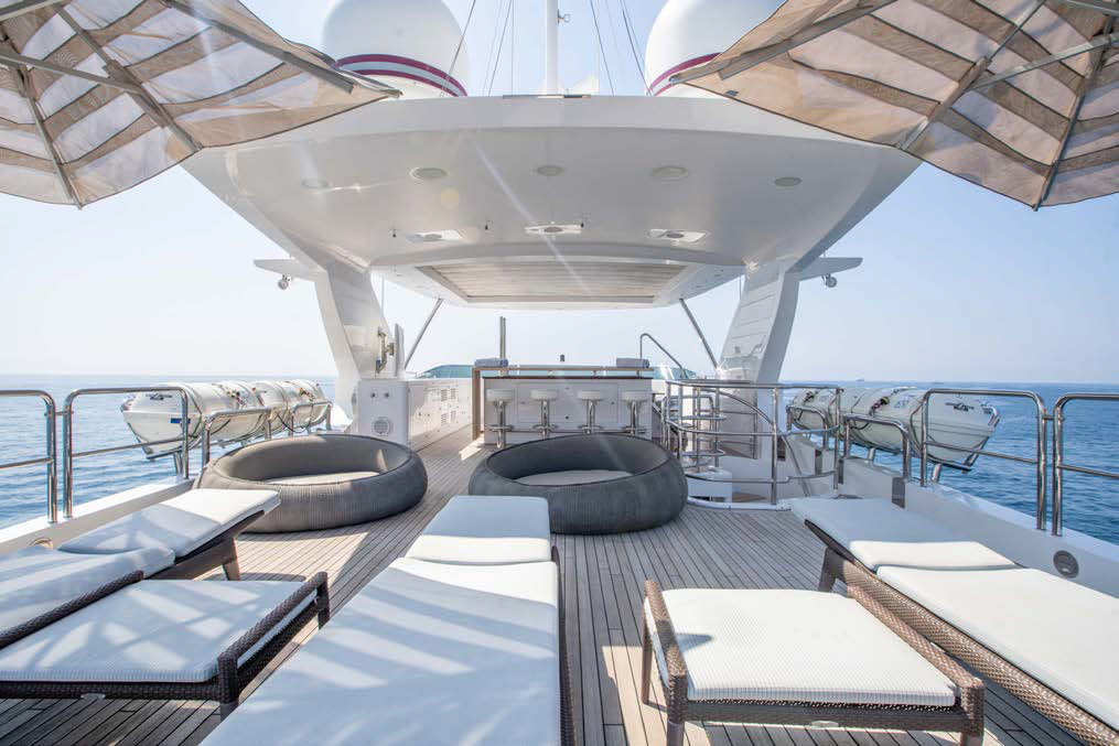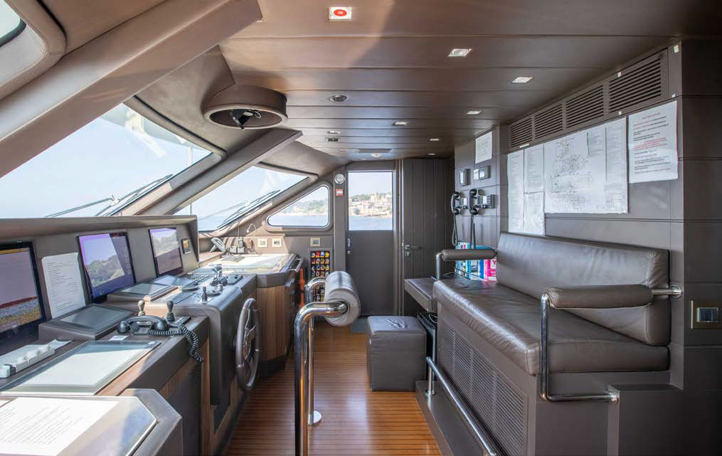 Full beam owner’s suite forward on the main deck with panoramic windows, large storage, his and her en-suite.