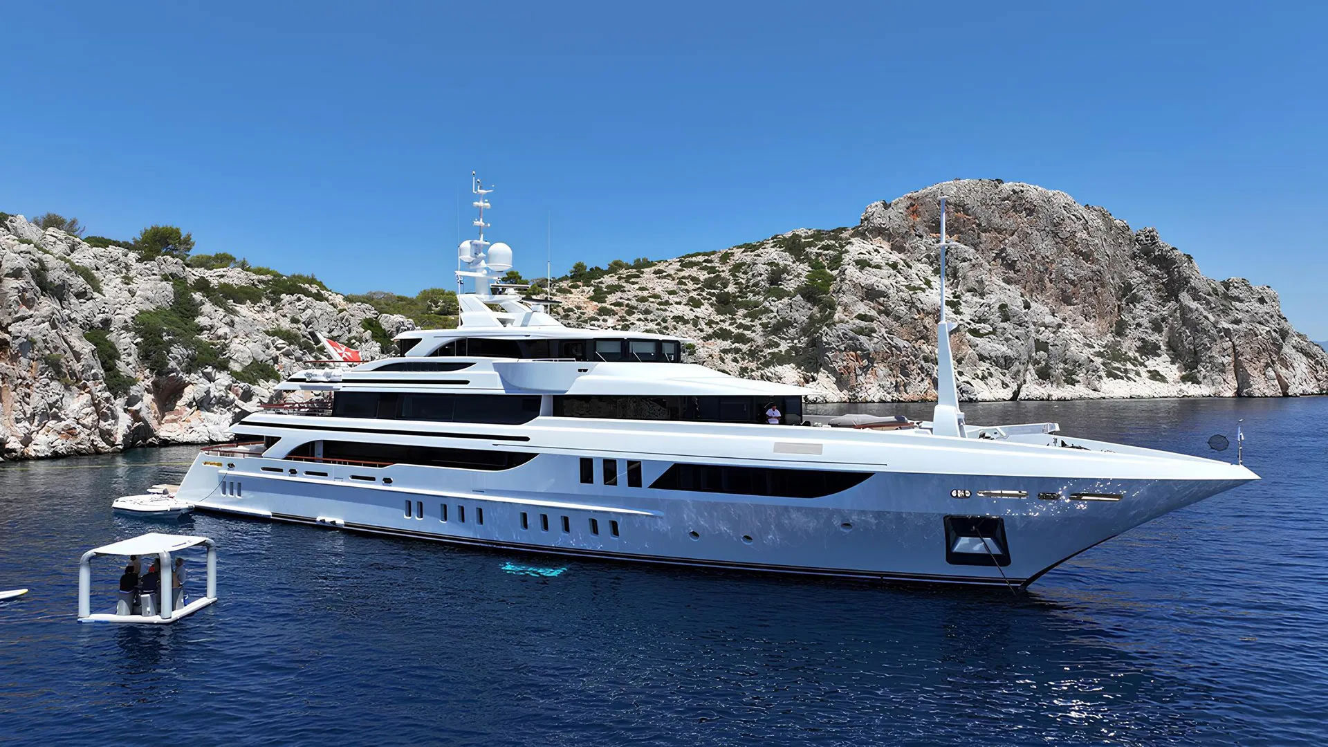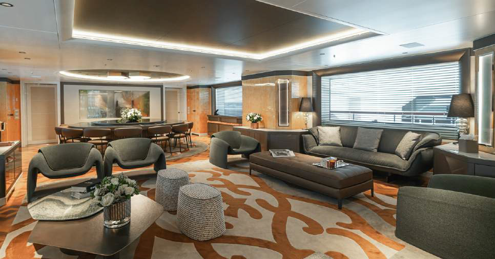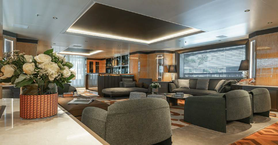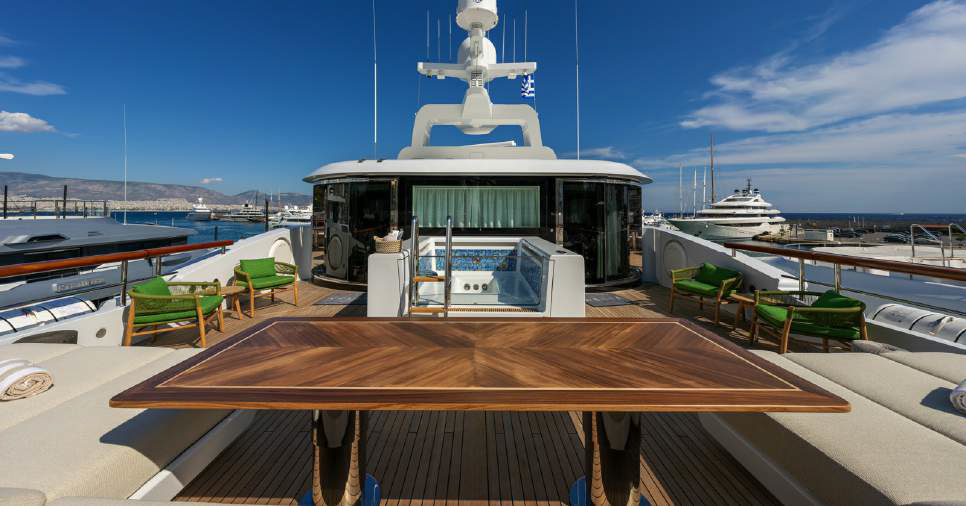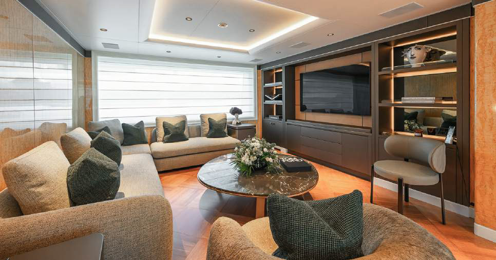 Entertainment: Large cinema room, spacious main salon, and a sundeck jacuzzi.
