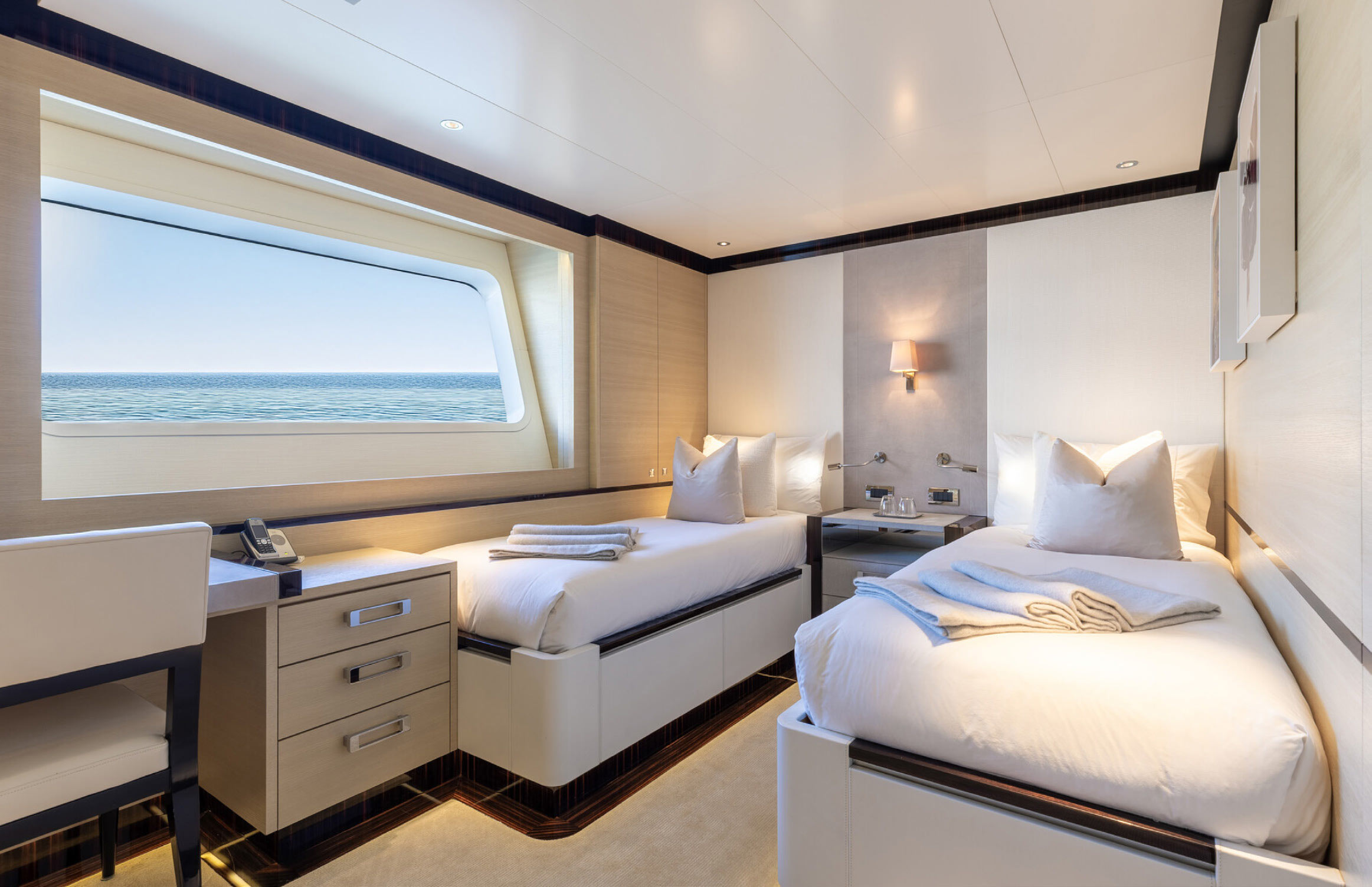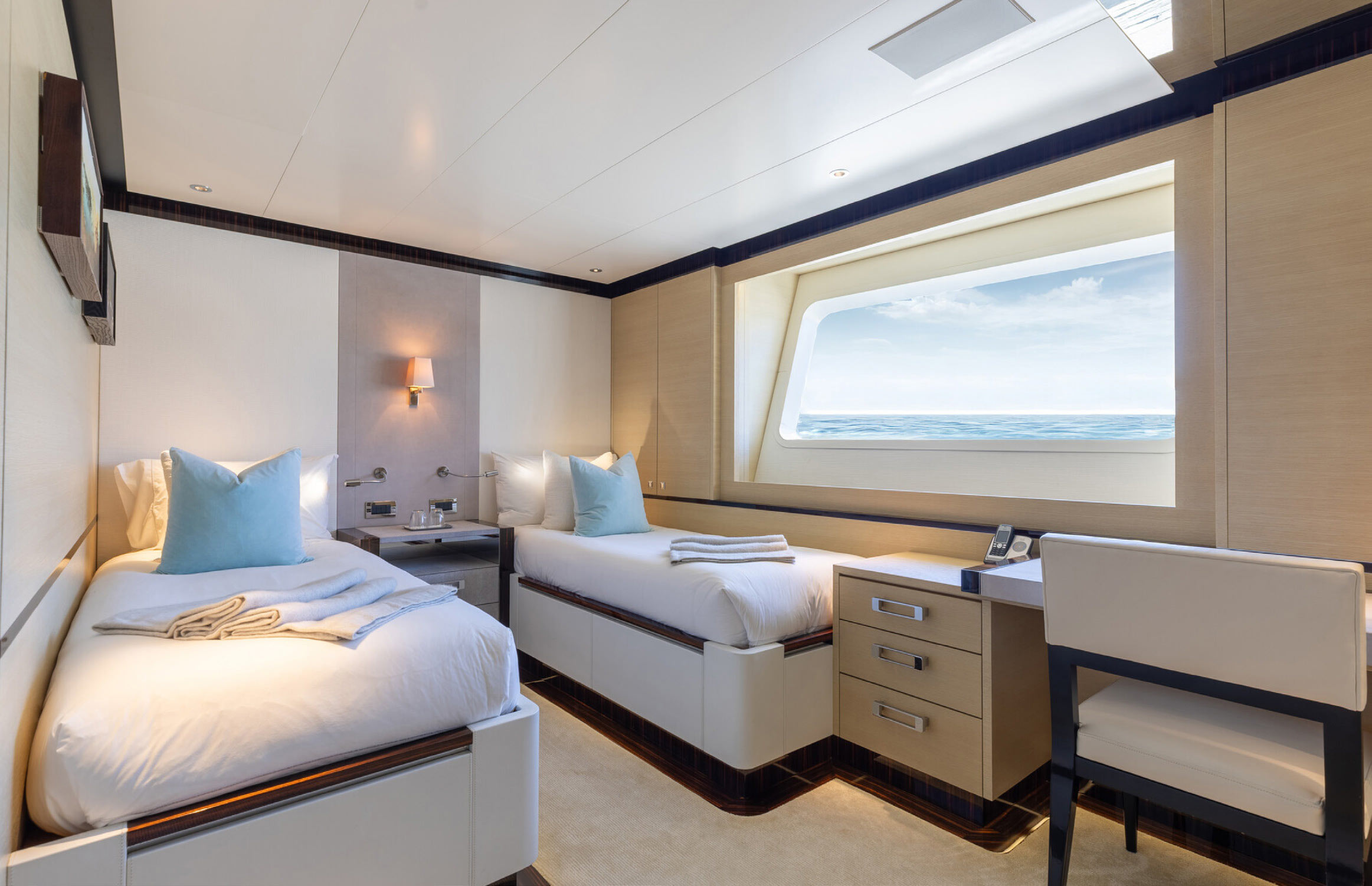 Captain’s ensuite cabin plus (3) crew ensuite cabins accommodating up to 8 crew in 4 cabins.