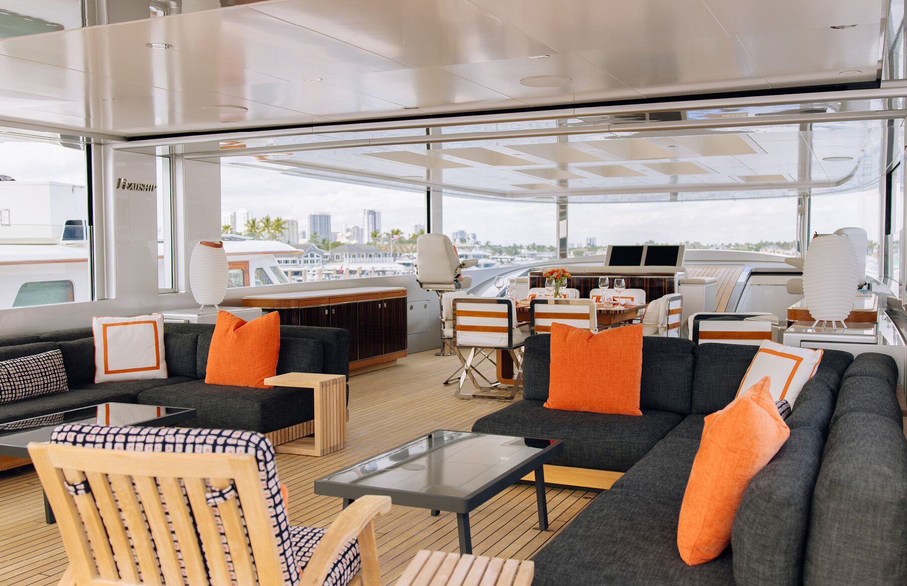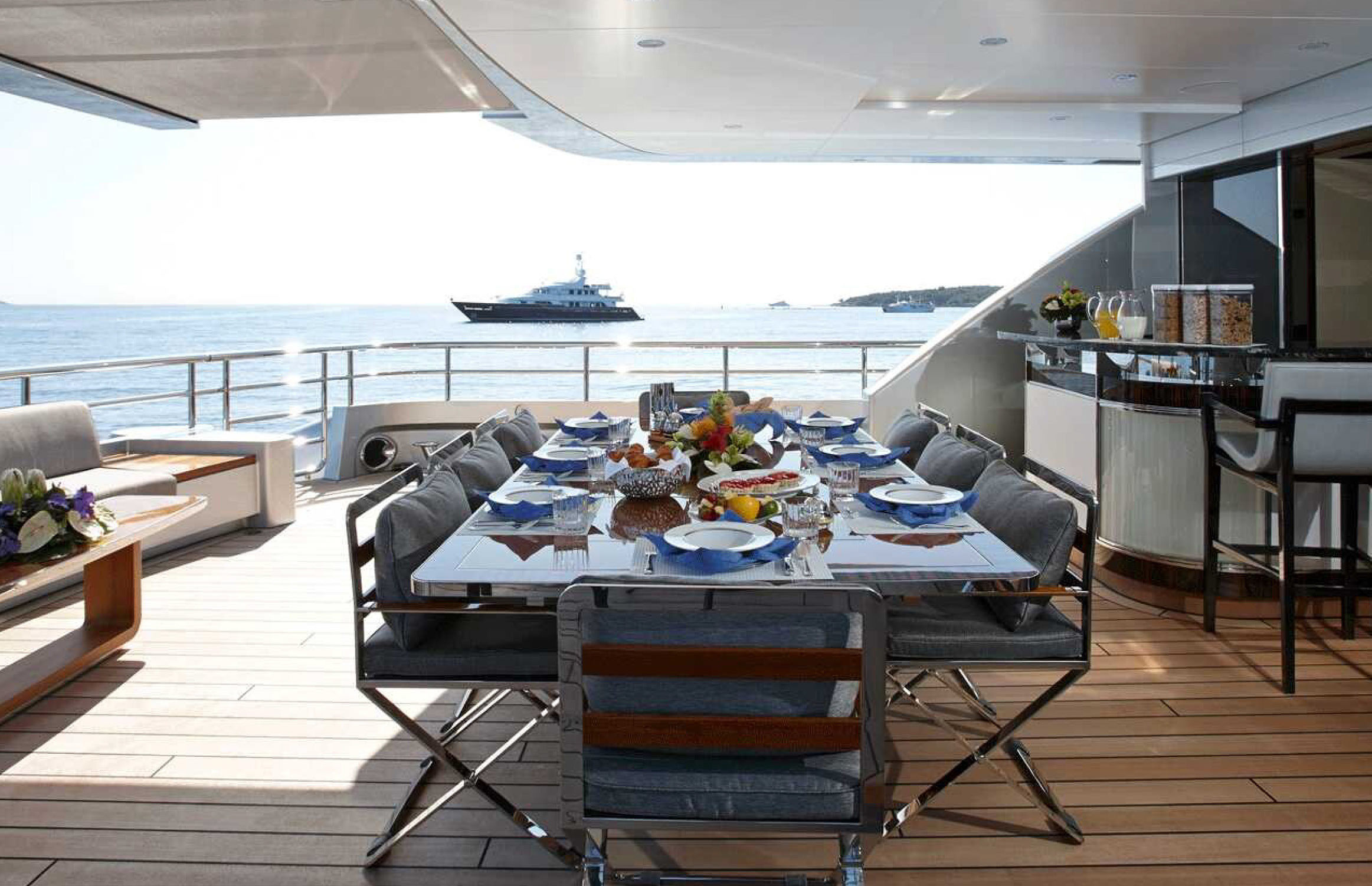 The exterior guest areas onboard are perfect for both entertaining and relaxing. The aft deck is spacious with a magnificent bar extending from the aft main salon. The sun deck is impressive and beautifully detailed and can be converted to be semi-enclosed and air-conditioned for comfortable use in all climates.
