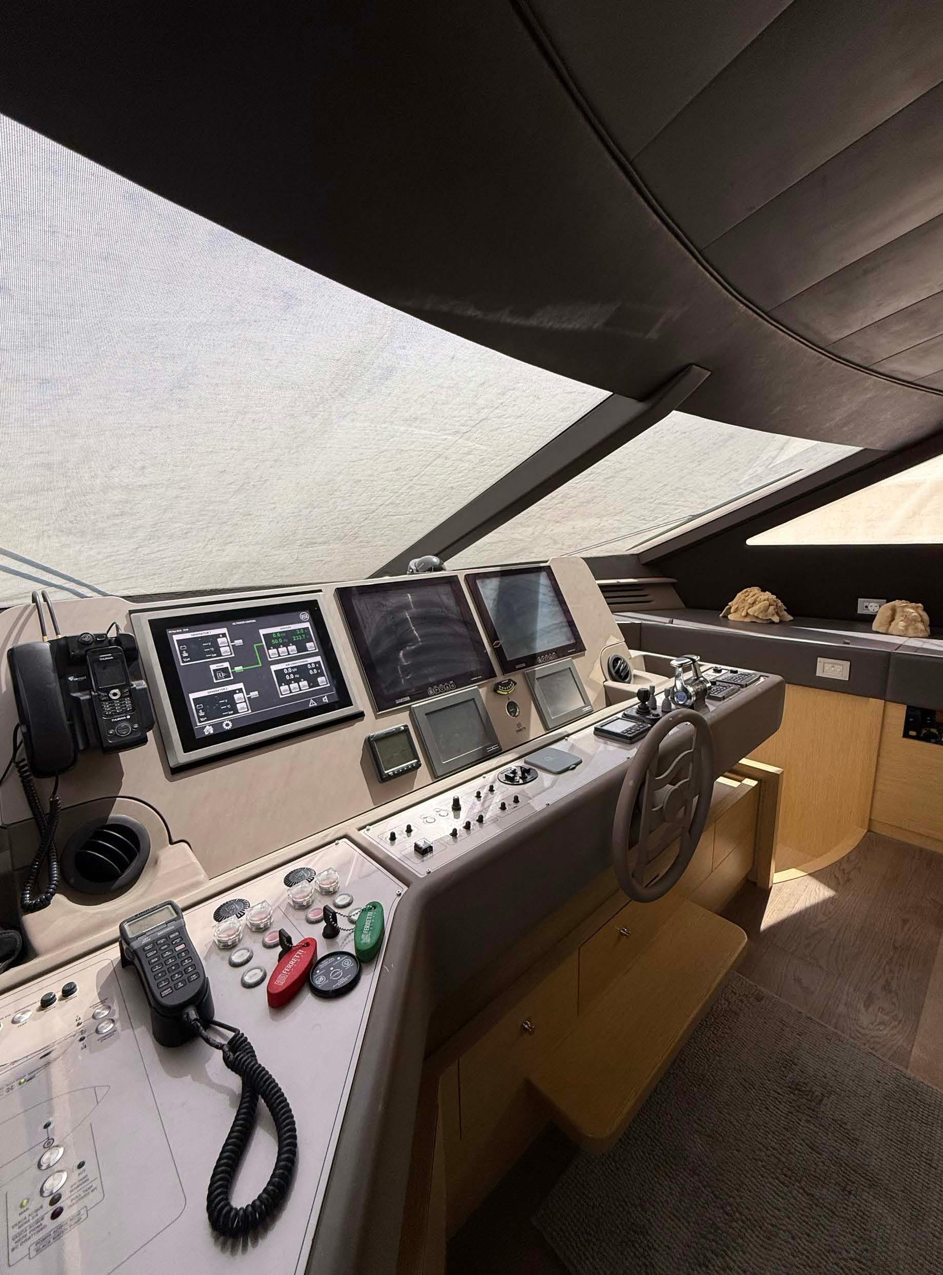 Radar / Chartplotter / Echo, AIS, Vhf, Electronic anemometer, Gps, Autopilot, Rudder angle indicator, Compasses, Alarms, Searchlight.