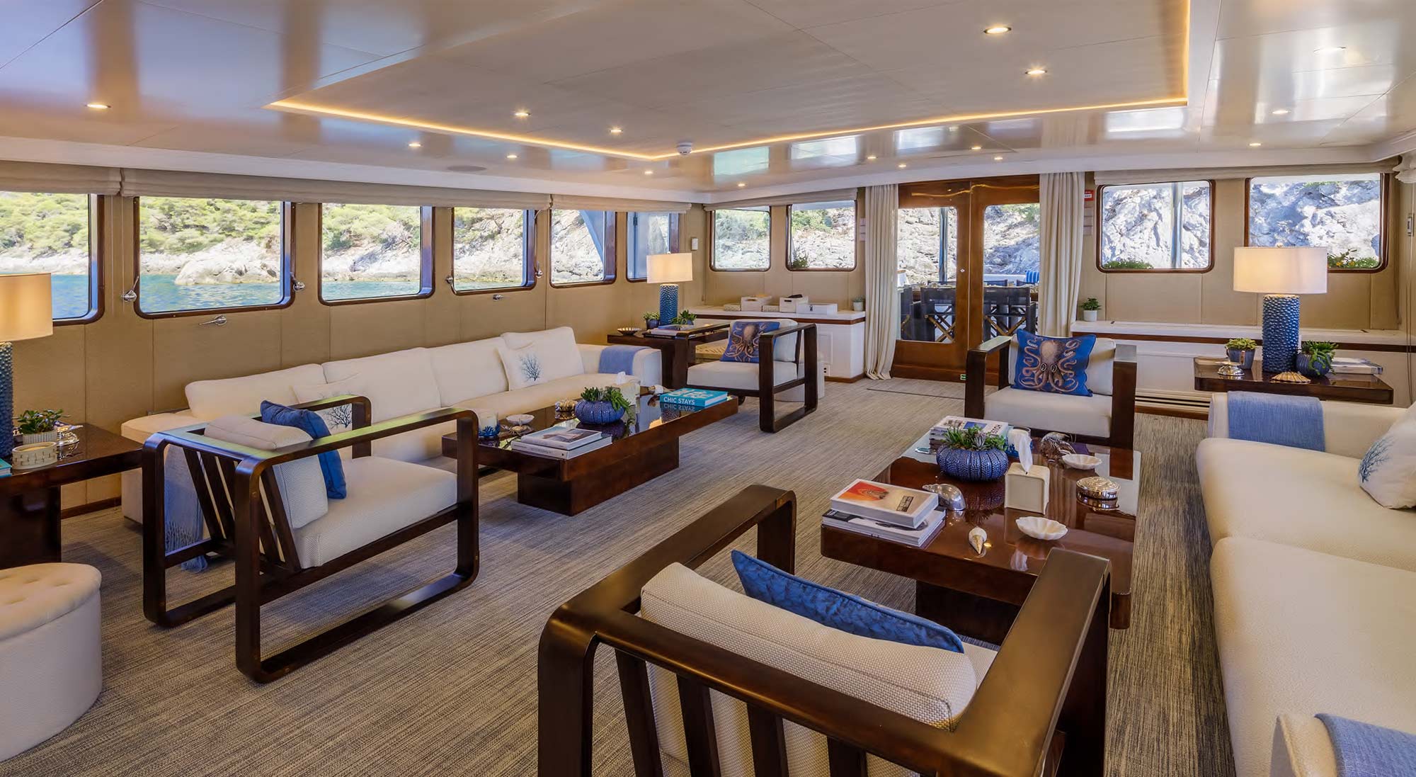 New Carpets and upholstery throughout Main Deck Salon and DIning