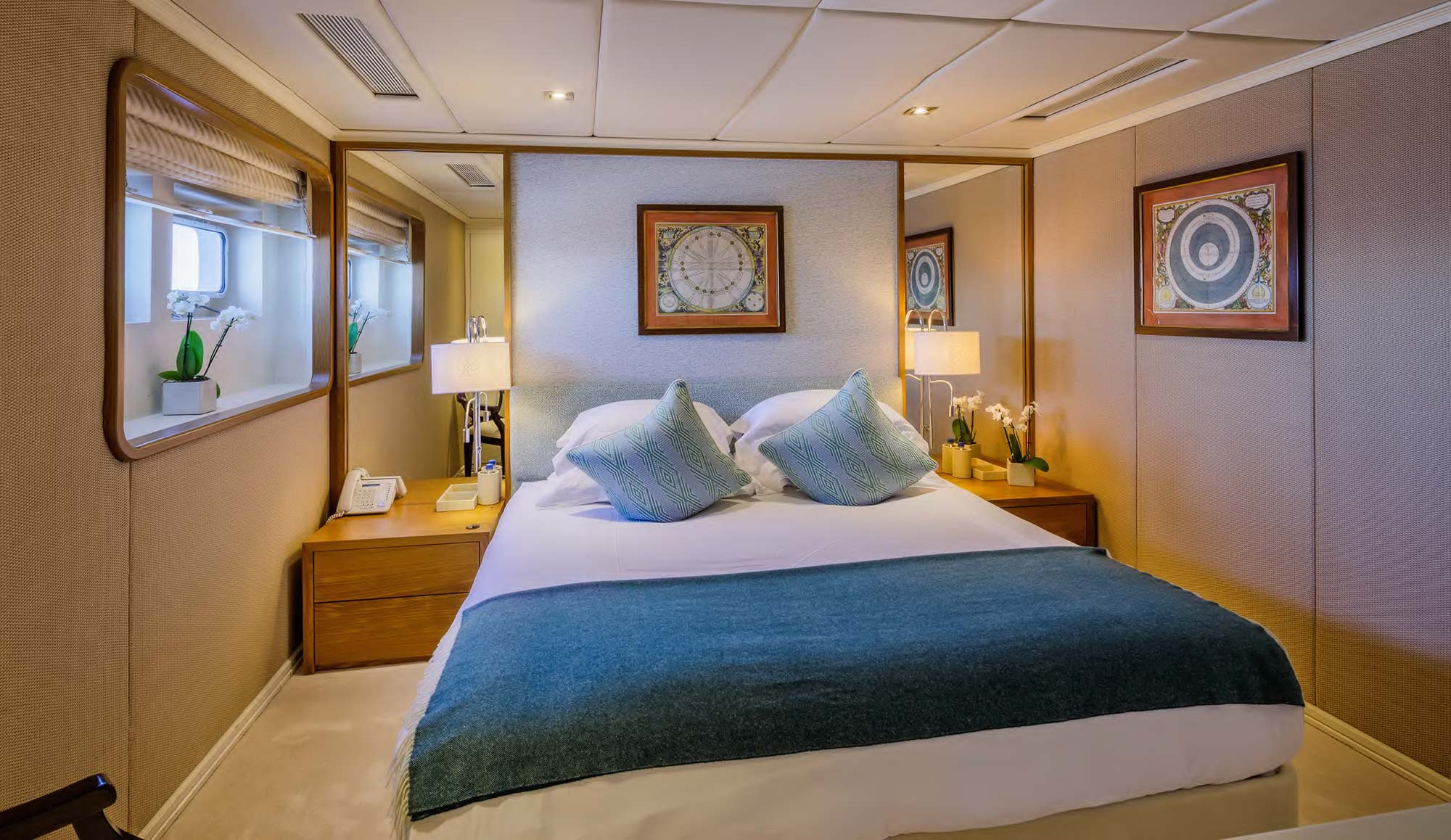 Four Double cabins - two of them with king size bed (1.80m*2.00m) and the other two with queen size bed (1.60m*2.00m)