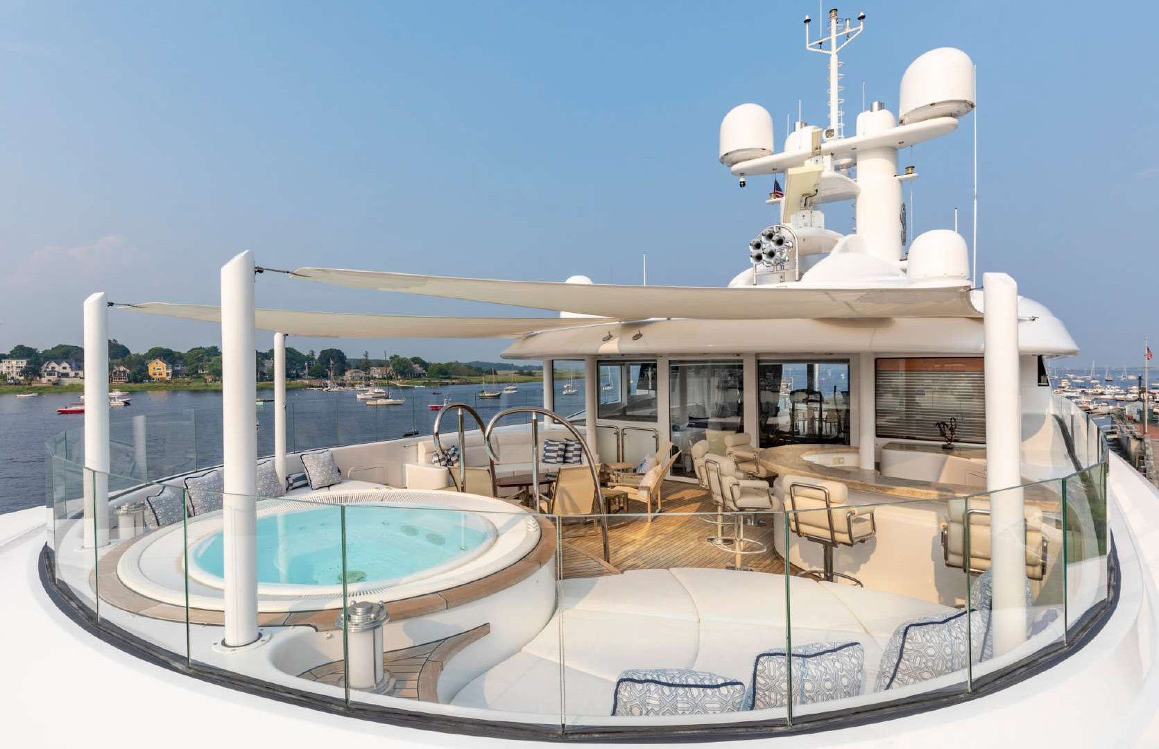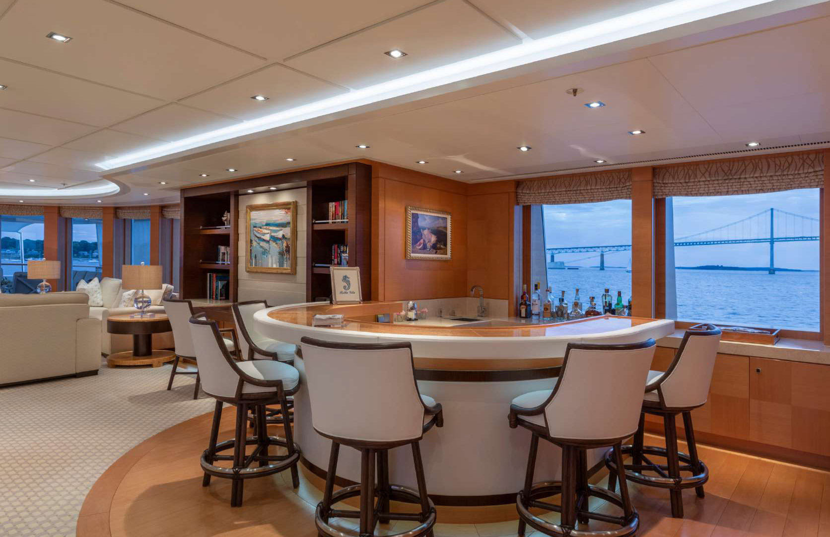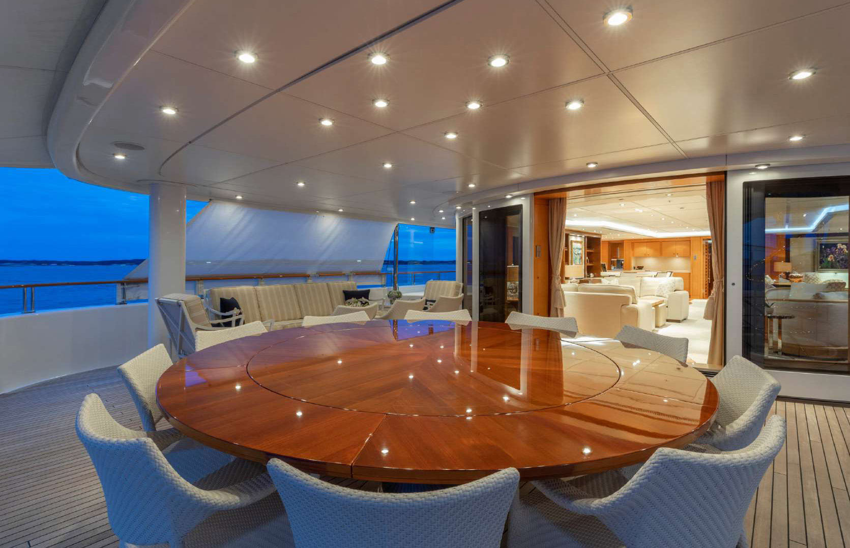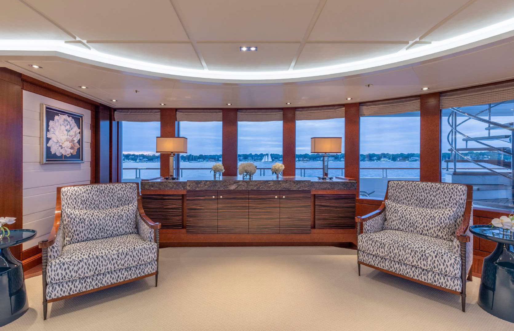 Sleeps up to 12 in 6 staterooms, Main Salon is flushed with natural light and comfortable textures. The modern combination of handcrafted woods, contrasting fabrics and expert lighting make this a grand room for social gatherings. Lighting, window treatments and audio visual systems are all controlled with iPad integrated remote controls.