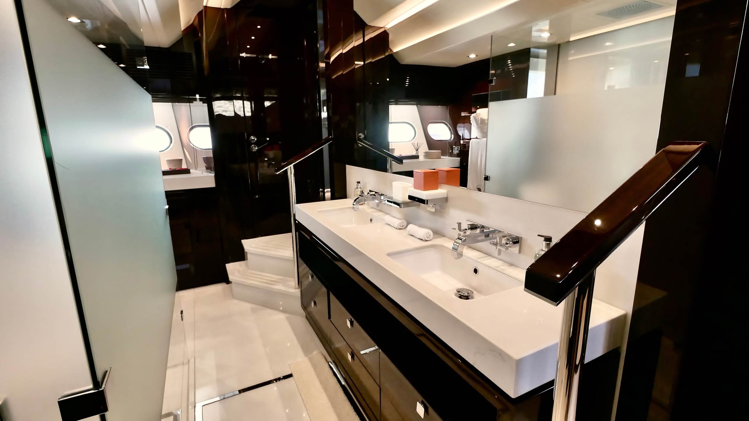 › Bang & Olufsen audio visual upgrade as detailed in each guest area except Wheelhouse, Crew Mess and Crew Cabins.